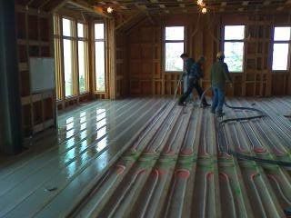 Sand aggregate used in Gypsum Concrete is much smaller than traditional concrete, allowing increased surface contact with the radiant heat tubes, which provides a more efficient heat transfer that lightweight concrete.