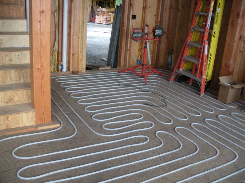 Radiant heat floors provide an efficient even heat throughout any room. The most common method of installing radiant heat in wood framed construction is to staple the radiant heat tubing on top of a plywood or OSB subfloor and pour Gypsum Concrete over the tubing at 1-1/2” thick (measured from the subfloor). The pour thickness can be varied to allow for different floor covering thicknesses to be installed flush at transition points. Gypsum Concrete is an excellent thermal mass for radiant heat applications. When compared to traditional Concrete or Lightweight Concrete, Gypsum Concrete will outperform in every category: